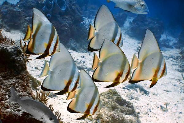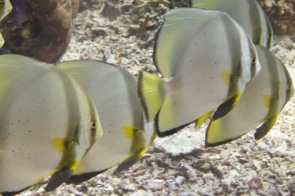 圆眼燕鱼又被称为圆蝙蝠,因身材宛转然而长有蝙蝠翅状的鱼鳍而得名,它属于一种极具参瞅性的珊瑚鱼类,身材大多比拟扁平,遍及乌色的2-3条宽条纹,鱼鳍边际处长有显著的乌色条纹,广大分散于印度洋和宁靖洋的热戴海疆之中。