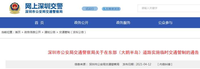 东部(大鹏半岛)实施临时交通管制