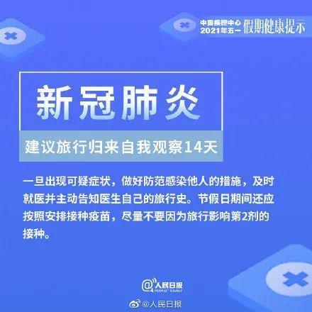 建议“五一”旅行后自我观察14天