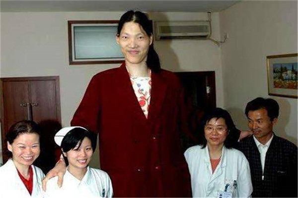 曾金莲的身高到达了两米四七,是我国名副其实的女巨人,曾今年在年幼的时候一顿饭所吃的食物质量超过了1.5斤,当时他的家里人就怀疑是不是跟今年得到什么某种怪病,到医院检查发现曾金莲的生长激素分泌过快,所以个子很高。