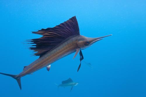 其实,世界上最快的动物之一——旗鱼,又称芭蕉鱼。属洄游性的鱼类,外形略扁,呈流线型,肌肉发达,最大的旗鱼可长达数米,重达上百千克。