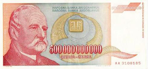 旷日持久的内战和国际社会制裁使南斯拉夫经济处于崩溃状态,物价飞涨和货币贬值导致市场流通钞票供不应求,2009年1月16日报道,津巴布韦储备银行从即日起开始发行一套世界上最大面额的新钞,这套面额在万亿以上的新钞包括10万亿、20万亿、50万亿和100万亿津元四种奇+闻+网。即使是100万亿,贬到最低时只能买半个面包。