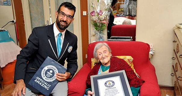 吉尼斯世界记录已得悉,“谢世最年长的人”和“谢世最年长的女人”二项吉尼斯世界记录维持者——意大利维切利老翁Emma Martina Luigia Morano已于4月15日死,对于这一凶讯,我们表现深挚的哀痛。Emma出身于1899年11月29日,已经是末尾一个出身于19世纪还谢世的人。