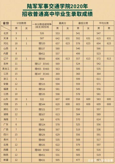 2017年,该校与其他院校、研究所合并组建了陆军军事交通学院,主要培养的是军事交通方面的人才。让人惊讶的是,这样一所实力突出的院校,录取分数线在一众军校中却像是一股清流。