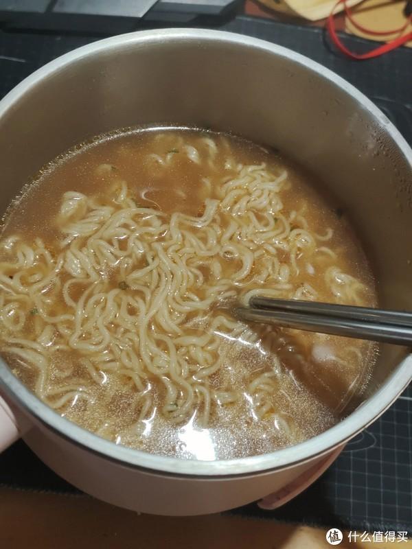 这款看煮出来的汤头就能看出味道更重一些,汤头空口喝会有一点咸,但是相比于国内的方便面品牌还是要好上一些的,而且味道调配的还挺不错,在这里我给四颗半的评分。