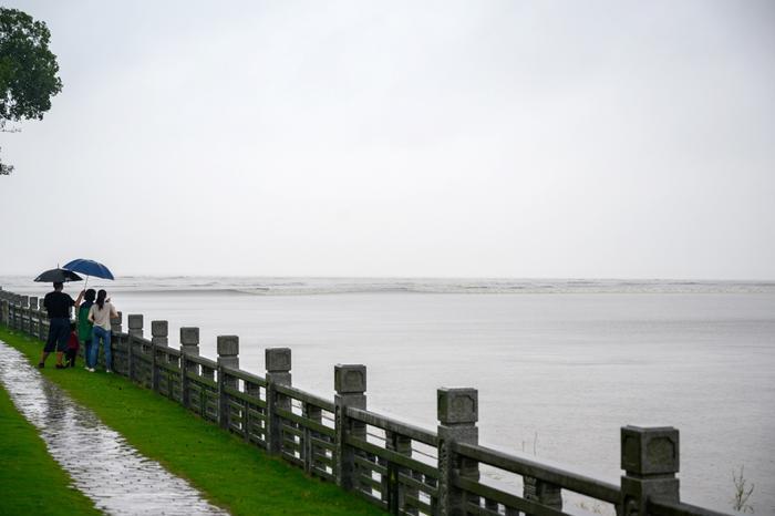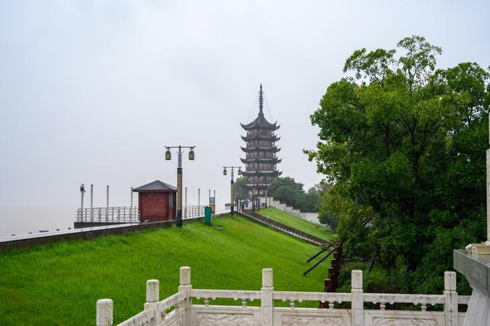 如今的海宁盐官观潮景区设施非常完善,江岸边清一色的草坪,堤岸也经过加固处理并设置了步道,安全系数更高。除了沿岸观赏外,还设有亭台、楼阁、宝塔等观赏建筑,有的人喜欢追逐着潮水观赏,有的人喜欢站在高处俯瞰观赏钱塘潮的大气磅礴,在这里都可以实现。