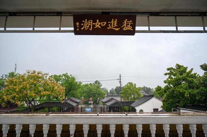 在一座亭子中悬挂着一块匾额,匾额上写着“猛进如潮”四个大字,为孙中山先生所题,不仅指钱塘江大潮格外猛烈,如今也是海宁精神,就像这潮水一样奋勇向前。