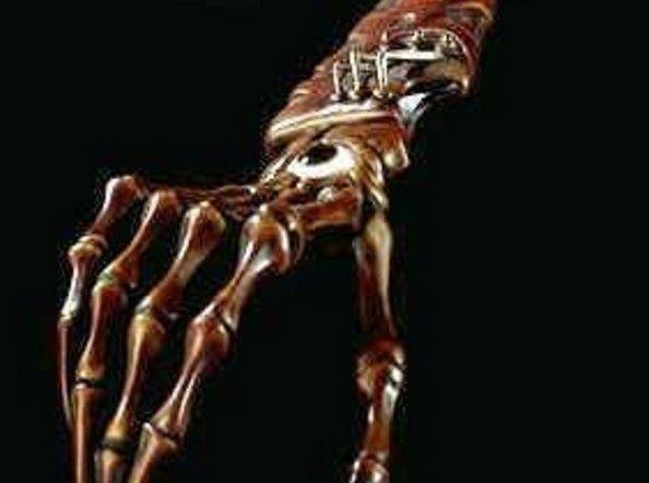 鬼手:鬼手是十四世纪意大利的一个疯铁匠所铸的一把刀,世界上最诡异的刀,没有之一!据传他将自己妻子的右手砍下做成刀柄,后又将儿子肋骨做成刀刃,并把自己的小腿骨做成刀柄,献给了当时的债主。