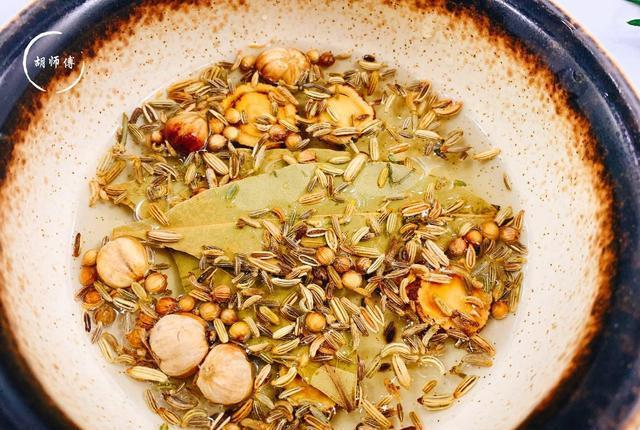 第二步:将白豆蔻、小茴香、香叶、甘草、香菜籽全部放入到清水中浸泡10分钟,10分钟后,再将这些香料全部用流水冲洗1遍即可备用。