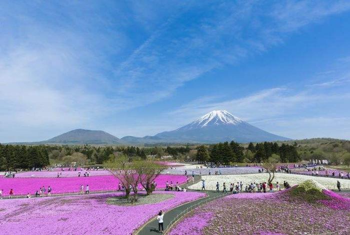 富士山下,成片的芝樱如花神编织的地毯。/JNTO