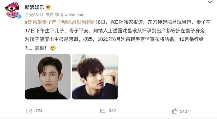 从歌手到丈夫再到爸爸,他可以算是“爱豆届”的标杆。10月18日上午,韩媒D社公开东方神起成员沈昌珉得子成为父亲的消息,随后相关新闻立即登上韩网NAVER热门新闻排行榜一位。