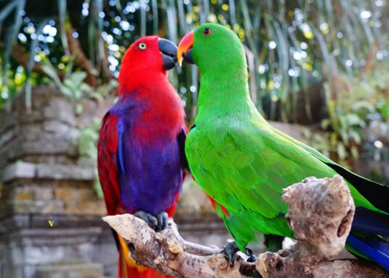 这种鹦鹉雄性和雌性的羽毛颜色完全不同,外表差异比较明显,雌鸟鲜,红色的羽毛群鸟亮,眼的绿色羽毛在一起,形成了非常强烈的对比,也是非常会说话的鸟类。