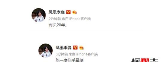 据@凤凰李淼:陈世峰被判20年,陈一度犹如晕倒。