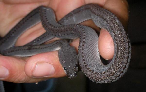卡拉细盲蛇要说是蛇类,倒不如说它是蚯蚓,如上图所示,它跟蚯蚓差不多大,在人手里都显得很小,比起世界上最大的蚯蚓,那会让人觉得蛇和蚯蚓互换了位置。目前为止,卡拉细盲蛇已濒临灭绝,是一种极为稀有的蛇类,再不保护,它就很难生存了。