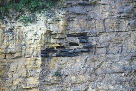 通往摩天洞的通道颇为特别,这个洞口位于九老洞洞口六十米高的主洞壁上,洞口斜上延伸一米多,接着就垂直向上,将近十米处接一横的岔洞,即是摩天洞。