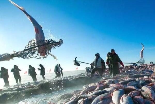 吉林省的查干湖冬捕最初开始于辽金时期,经历了上千年的历史,直到今天仍然保留着最原始的蒙古族捕鱼方式。也就是人工凿冰窟、人工布网、马拉绞盘形成动力来牵引并且拉拽渔网。