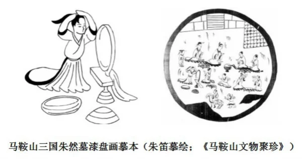 马鞍山三国孙吴朱然墓漆盘画摹本(朱笛摹绘;《马鞍山文物聚珍》)