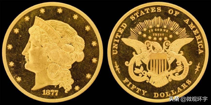 这款硬币的面额是50美元,一共分为两种款型,即J-1548型号和J-1546型号的硬币,上图中的这款硬币是J-1548型,这款硬币由于非常的稀少,具有极佳的收藏价值,因此每枚硬币都达到了1000万美元以上,其中成交价最高的为1500万美元。另外它的价格并不是固定不变的,随着时间年代的逐渐增加,它的价值也在不断上升。