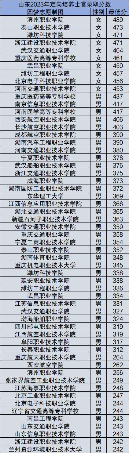 在女生录取中,收分最低分数都在450分以上,超过山东一段线10分以上,可见女生报考士官学校难度较大。