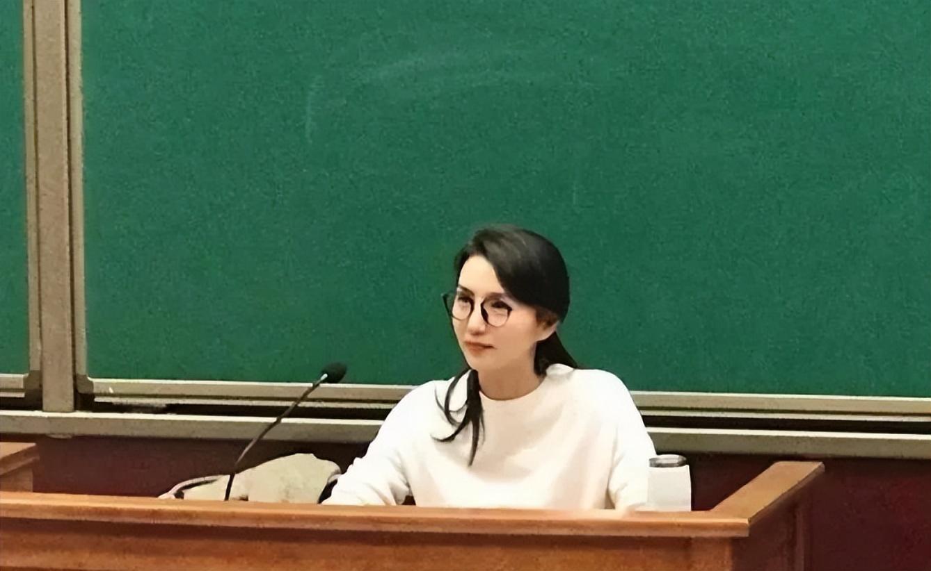 如今42岁的她,戴上了黑框眼镜、扎着低马尾,在中戏的教室里当起了老师。