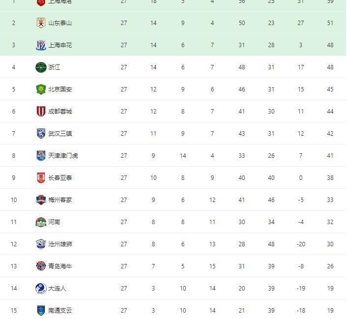 中超最新积分榜:上海申花小胜攀升第3,北京国安赢球位列第5!