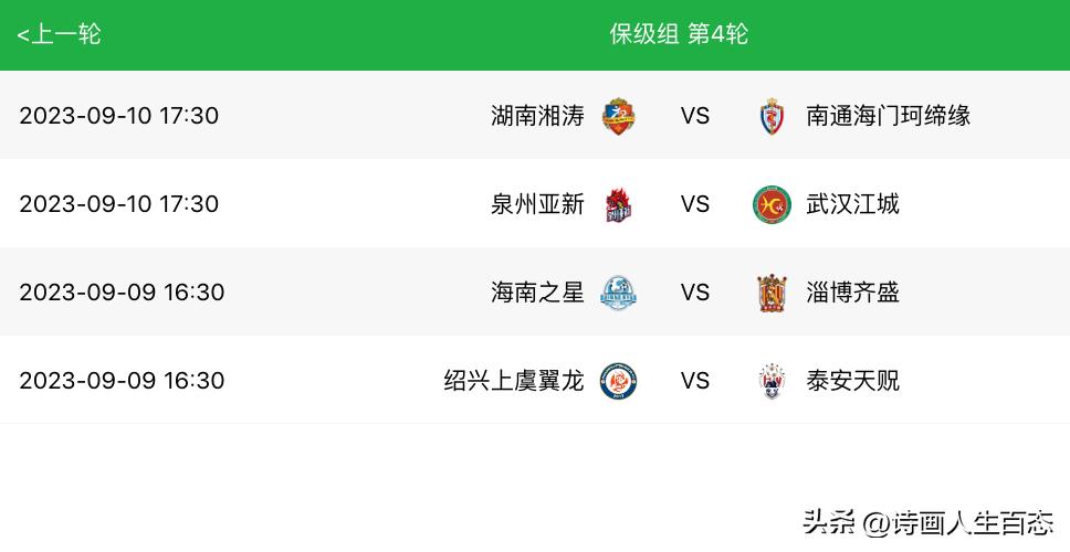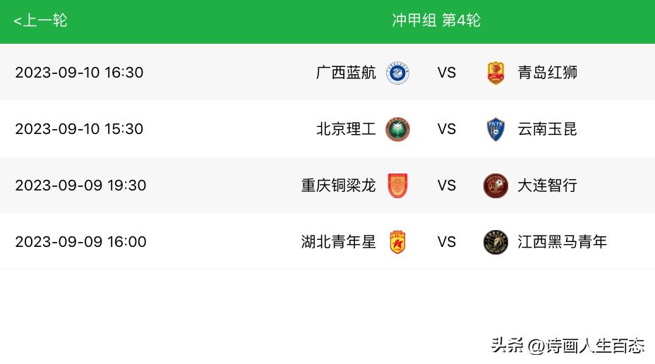 中乙第4轮比赛集中在9月9日,9月10日两个比赛日。