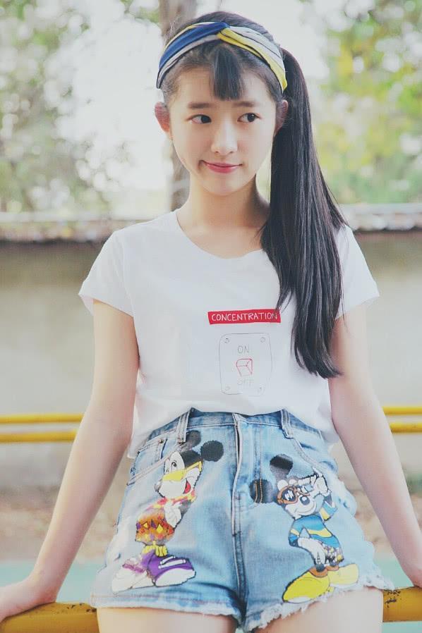 她身穿一件简单干净的白色上衣,简单的T桖比较小清新的感觉,跟她的形象也很搭,她下身搭配了一条印花图案的短裤,卡通图案的搭配,增加了几分可爱的气息,是耿耿本人了!