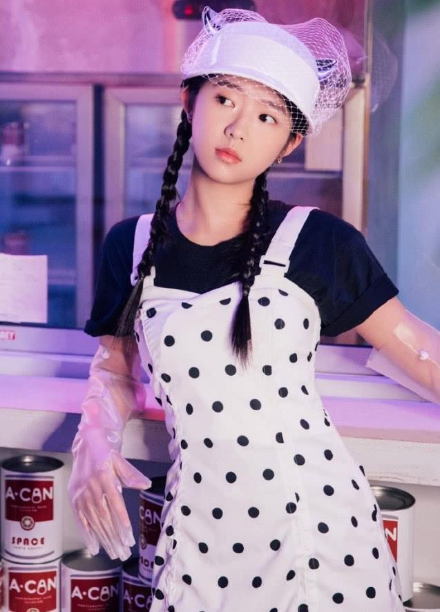 她的这个造型很是少女,她身穿一条波点的吊带裙,波点元素的搭配多了几分时髦感,显得整体看着没有那么单调,她内搭一件黑色的短袖,简单又不失时髦感,搭配网纱的棒球帽,港风味道很足。