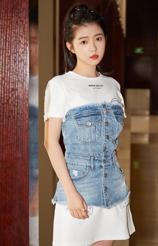 我们再来看一下她日常的其他穿搭吧,她身穿一条拼接的连衣裙,裙子的设计很有个性,上身是一件简单的T桖,中间牛仔裙的搭配,多了几分时尚感,扎起高高马尾的她,显得格外的有精神。