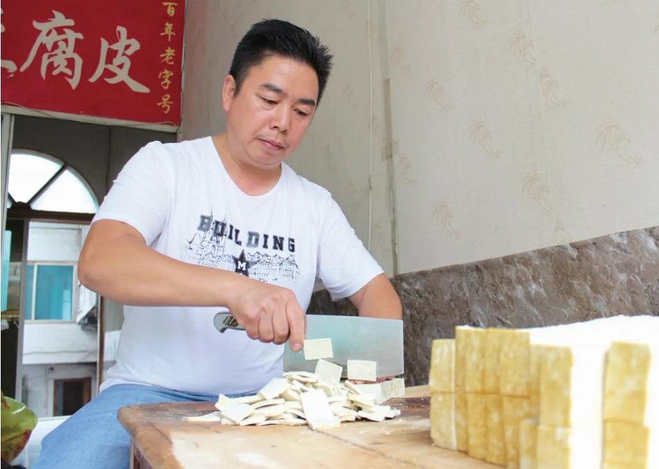 尚稽豆腐皮是产自遵义县尚稽镇的一道传统名吃,它其实是经过发酵制成的一种豆制品,这种豆腐皮呈棕褐色,质地绵韧,虽臭犹香,别具风味,可以切丝,也可以凉拌着吃,入口咸鲜爽口,越嚼越香,很适合作为下酒菜。
