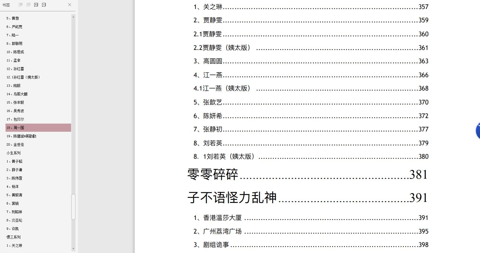 足足421页! 光目录就有7页之多……涵盖几乎我认识不认识的娱乐圈所有明星!不得不拜服作者的文笔或者说是想象力。