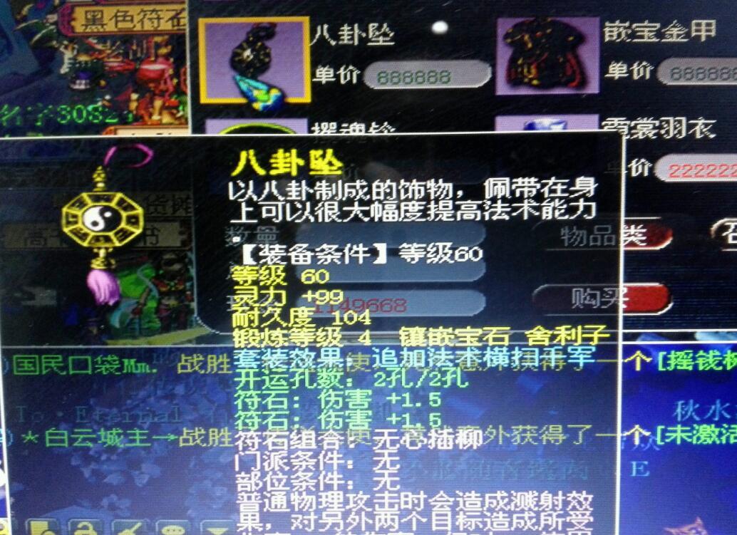 上面的是一件60级拥有着横扫千军套装的链子,以前力属性加点比较流行的时候横扫千军的套装真的比较实用,比如力盘丝、力地府的玩家都会选择带横扫千军套装,但是小编感觉现在带横扫千军套装的好像没有几个了,一个是物理系不强势,另外一个原因就是横扫千军套装触发的几率比较低,而且触发之后使用了横扫千军还需要休息一个回合。