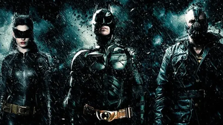 贝尔最后一次饰演蝙蝠侠,安妮-海瑟薇加盟饰演赛琳娜-凯尔,汤姆-哈迪饰演贝恩,玛丽昂-歌迪亚饰演塔利亚-古尔。《黑暗骑士崛起》因其剧本、动作场面、情感深度和各种表演而备受赞誉,包括海瑟薇饰演的反英雄猫女和约瑟夫-高登-莱维特饰演的可能是布鲁斯-韦恩接班人的 GCPD 警官。