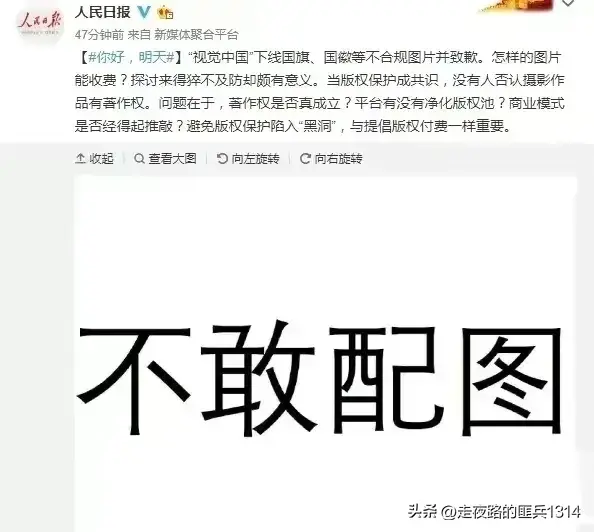 报社的文章后面,在该配图的地方却不敢配图,讽刺视觉中国,怕遭到公司维权!