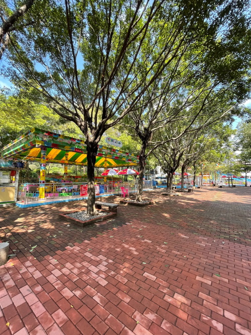 公园内很大的一块游乐场所,现在也是全封闭了。
