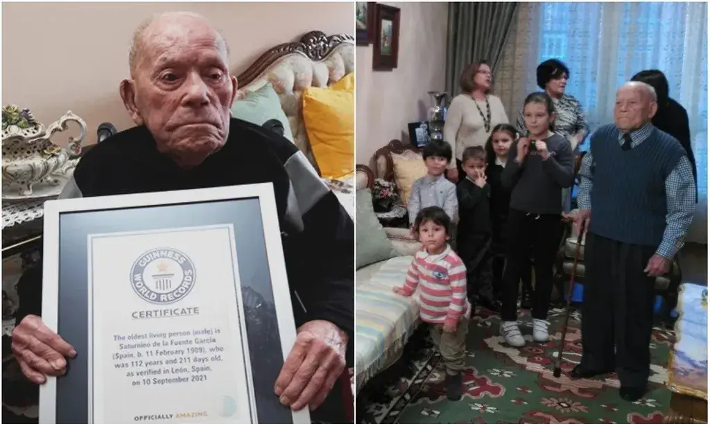 加西亚(Saturnino de la Fuente García)在去年9月被吉尼斯世界纪录大全认证为世界上在世的最长寿的男人,当时他112岁零211天。