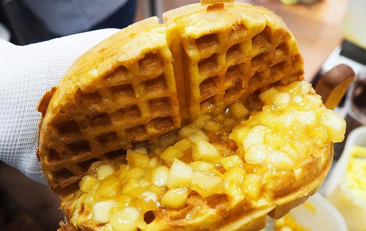 格仔饼是香港街头最为常见的小吃之一,你也可以说它是鸡蛋仔的变形版,因为它主要也是用蛋液烤制而成,烤好的样子呈格子状,只不过搭配的调料是花生酱,咬着吃,有种吃蛋糕的感觉,口腔中充斥着蛋香味,现在也变化出了不同的口味,有蜜瓜味、巧克力味等。