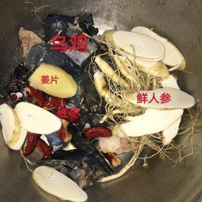 乌鸡/土鸡 半只新鲜人参 1条热水 一壶红枣 10颗姜片 3片盐 2克