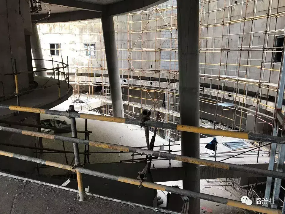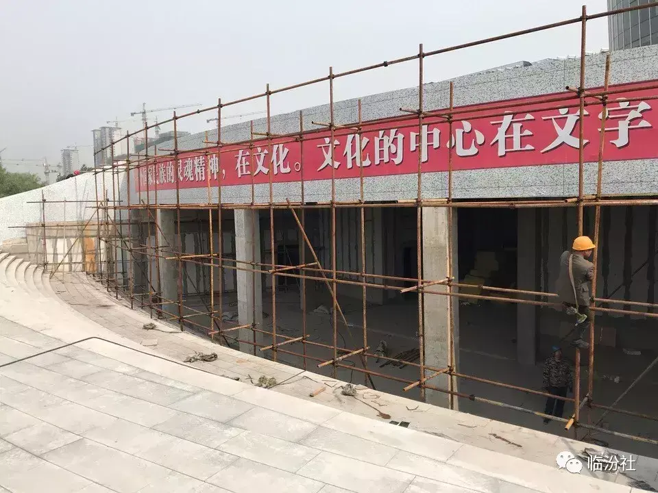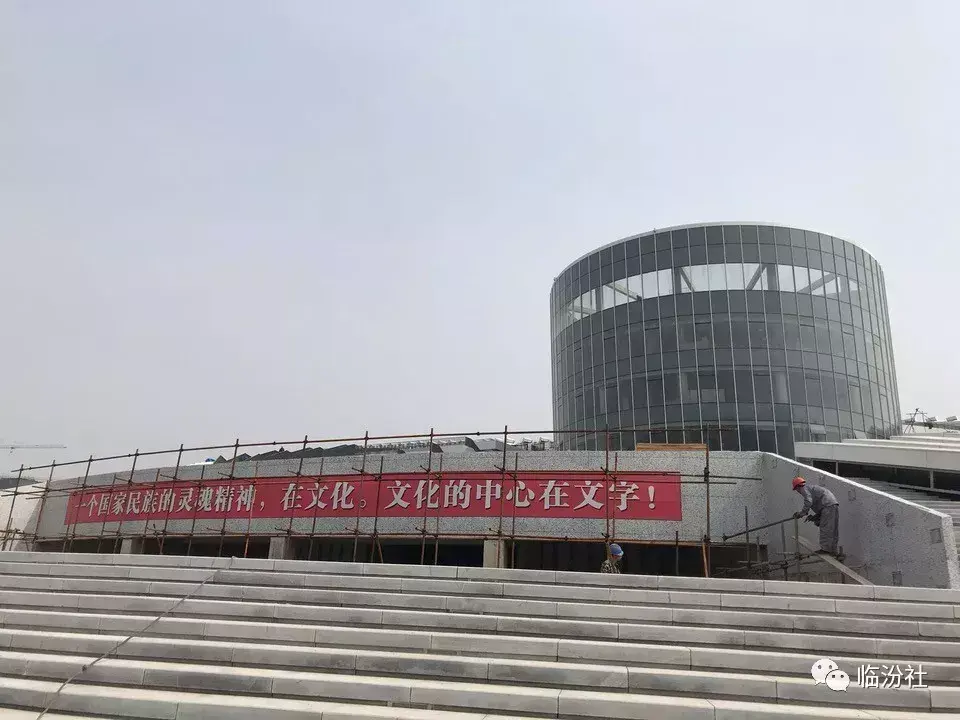 2019年5月,临汾市图书馆已经初具规模:外立面工程基本完工,内部空调管路铺设完成,现在已经开始内部装修。由于设计起点较高,可以看出工程难度确实不小,不过这也凸显了建筑的恢宏气势,尤其是近距离参观,更为震撼,不由得令人期盼着尽快开馆!