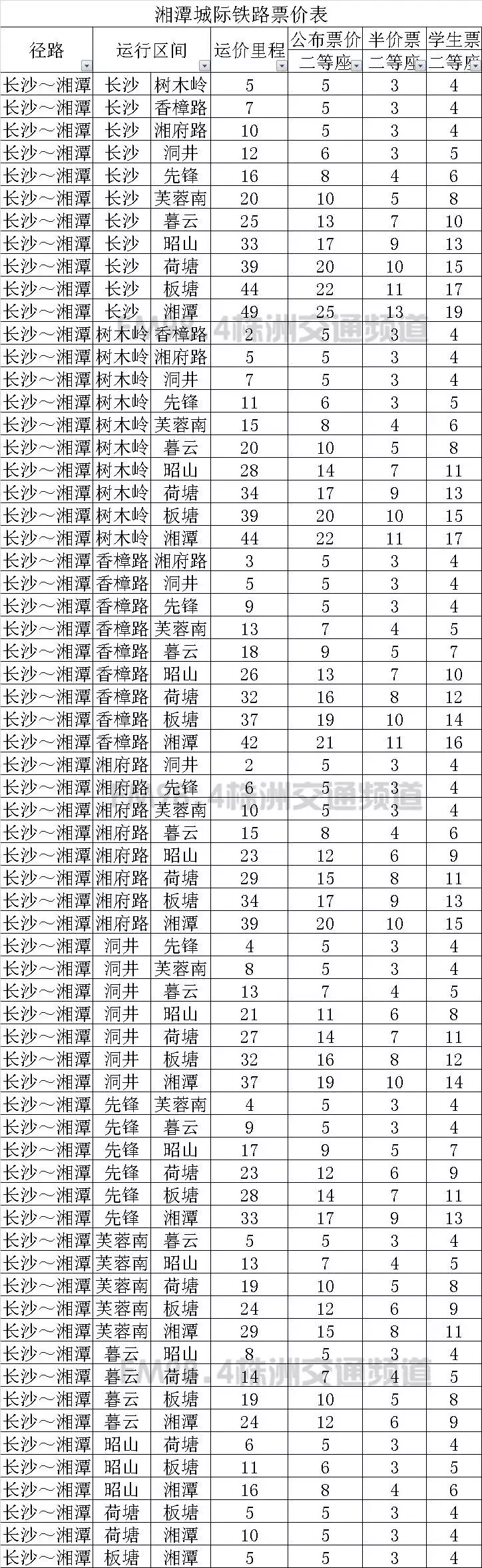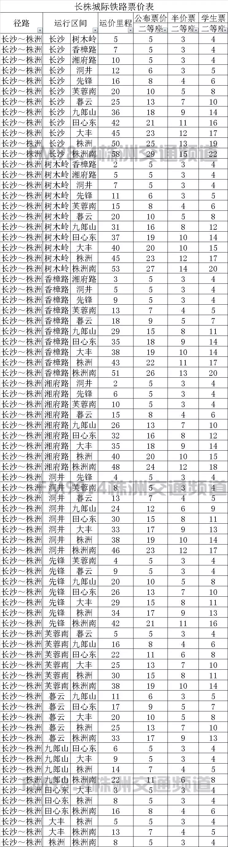 权威发布!长株潭城铁最新票价、列车时刻表!