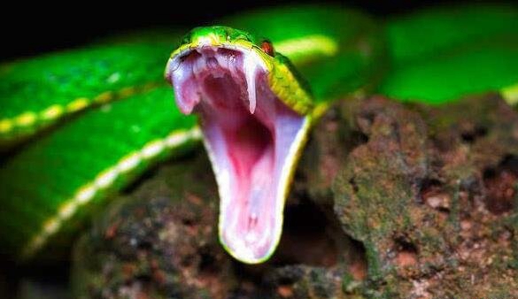 中国毒蛇白唇竹叶青蛇,被咬后轻者截肢沉者毙命_图片