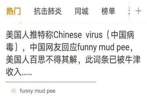 funnymudpee这个谐音梗,funnymudpee很多人瞅到最先城市将他与英语单词汇通联,funny华文谐音是搁你,而mud的谐音则是妈的,pee读出来是屁,而所有的道理也是有些没有文化的。这个谐音早在十分早之前便火了,然而是迩来是风闻被收入到牛津字典之中又再度被很多人用。