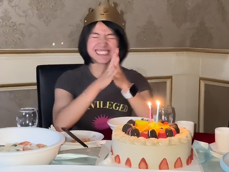戴着寿星帽,闭眼许愿的李勒优,眼里都是藏不住的开心。