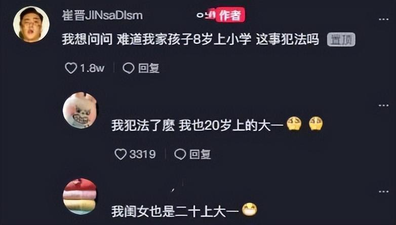 崔晋忍无可忍,将自己的回复置顶,说“我家孩子上学晚,8岁才上小学怎么了?”