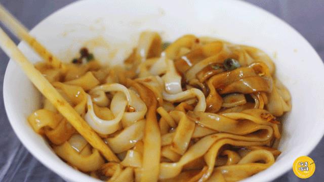 用筷子从碗底翻起,让每一根粉都均匀地裹上猪油,米粉立刻变得油光发亮。粉条的口感绵软又爽滑,猪油的香味让人回味无穷。