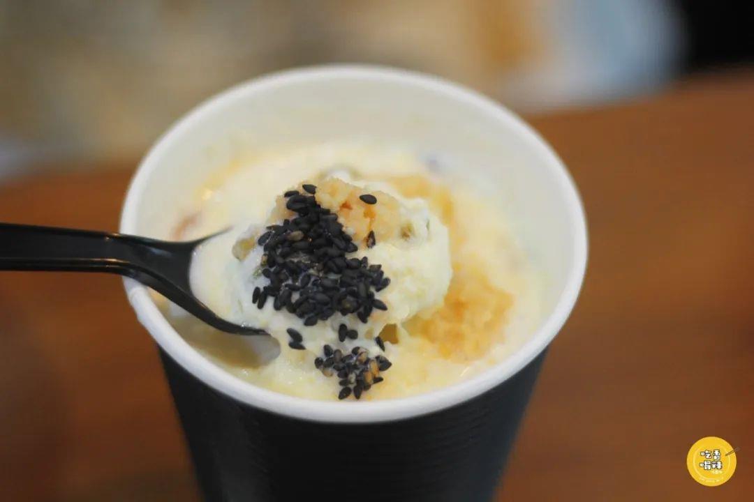 老板以前是酒厂的,店里的饮品都是自己调配研发的,九妹更是他的得意之作,在甜酒冲蛋的基础上还加了牛奶、黑芝麻、葡萄干、核桃碎等食材,吃起来非常的惊艳,受到了很多人的称赞!