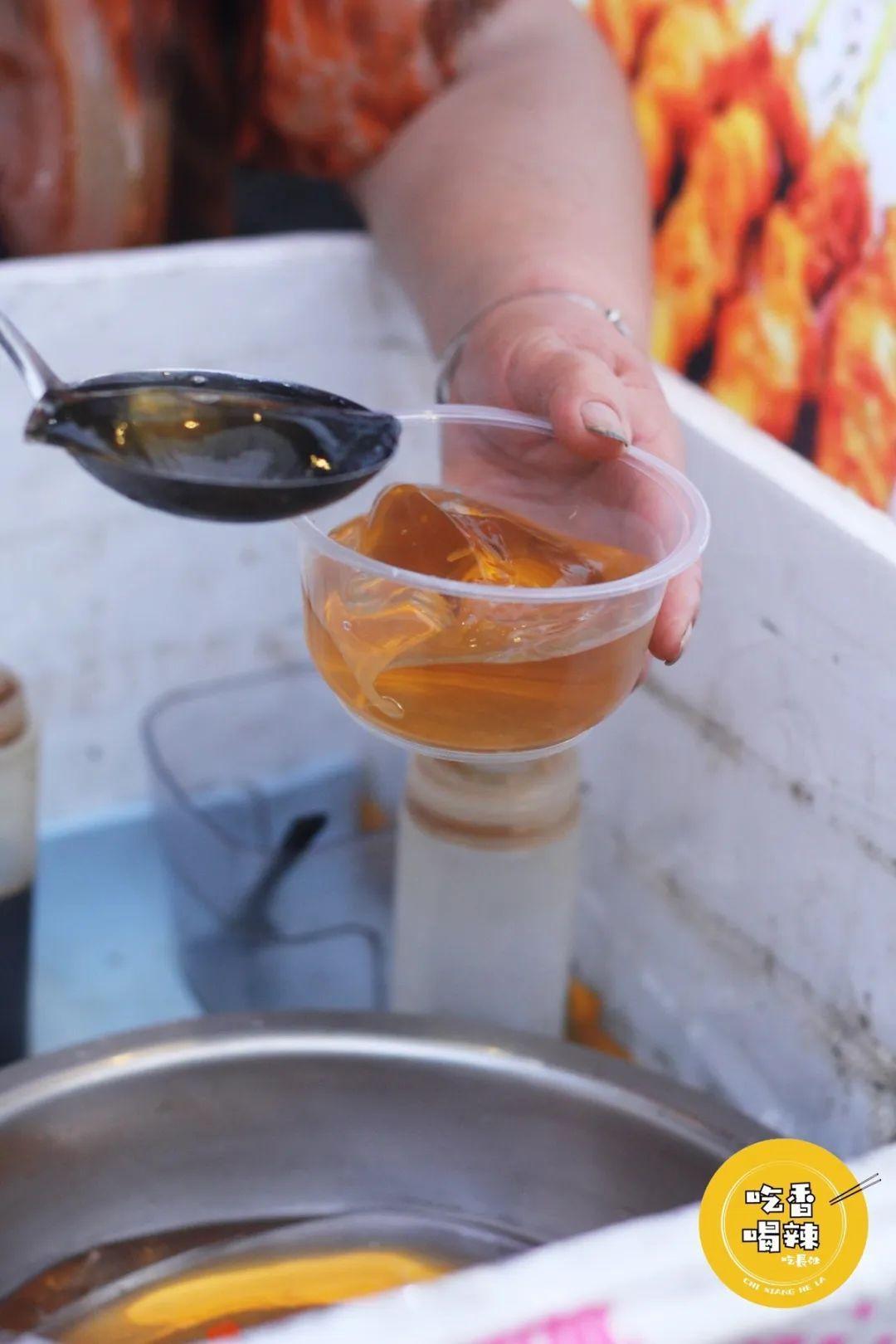 阿姨打开保鲜盒,从铁盆里舀上几勺晶莹透亮的凉粉,倒上自家熬的糖水,迎着暑风吃凉粉,真是夏天最幸福的事之一了!