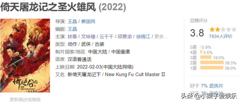 没错,《倚天屠龙记》糊透了,两部片子口碑都不到4分,可谓凄惨。