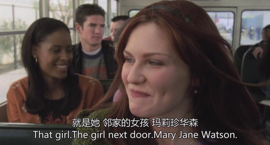 彼得就这样傻愣着看着MJ,然后被人故意绊了一脚;下车之后,彼得再次傻笑着和MJ打招呼,结果发现自己自作多情——原来MJ是和自己身后的同学打招呼。