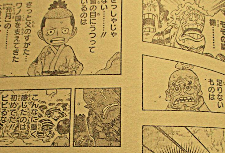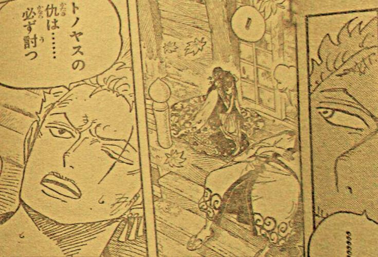 在950话里,大家期待的索隆终于上线了,索隆他们打败了忍者部队后,回到了墓地,索隆告诉日和他要打倒大蛇替老康报仇,看来今后的对战可能是是超新星VS凯多,索隆对大蛇,赤销九侠VS三灾。但日和表示想亲手解决掉大蛇,另外索隆叫日和带他去桥边,他要找牛鬼丸拿回秋水,没三把刀,索隆实力大打折扣!